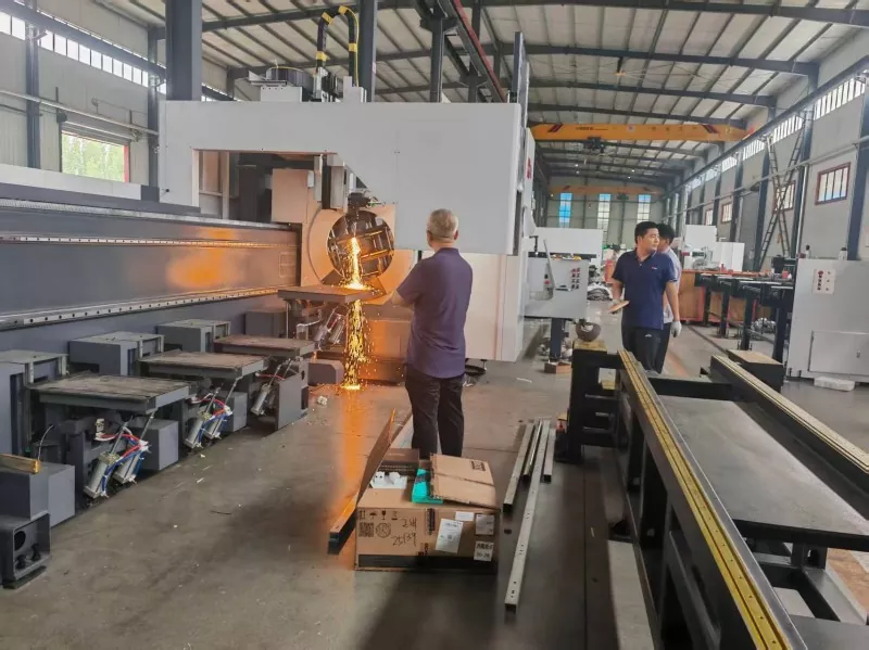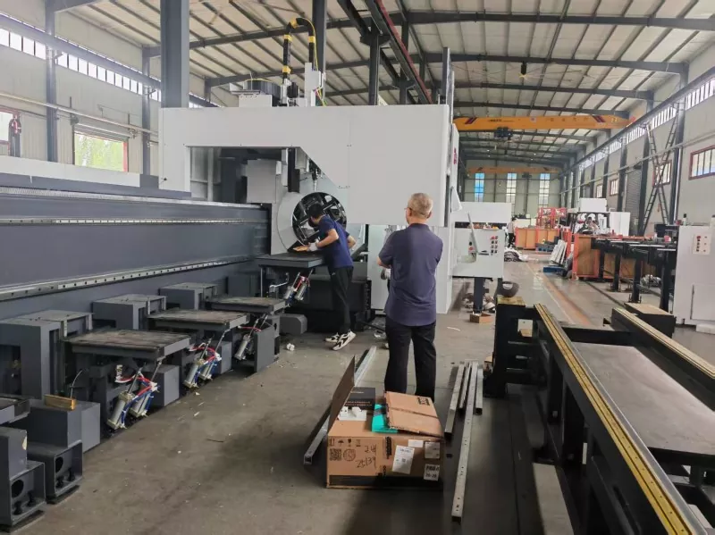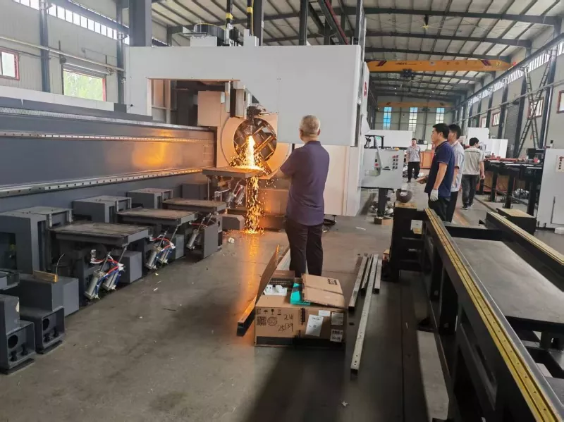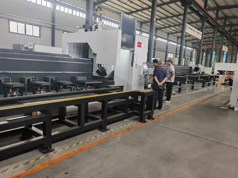 2025. június 1-jén a Qingdao Liweiyuan vezetői a Shandong Jinan Dingdian CNC Equipment Co., Ltd.-be érkeztek, hogy az újonnan előállítási nagyszabású lézercső-vágógép-berendezések helyszíni ellenőrzését végezzék. A berendezések teljesítményének, üzemeltetésének és technikai előnyeinek megértése érdekében ez az ellenőrzés nemcsak elősegítette a vállalat acélszerkezeti termékeinek termelési technológiai innovációját és felszereléseinek fejlesztését, hanem új lendületet adott be cégünk fejlesztéséhez.